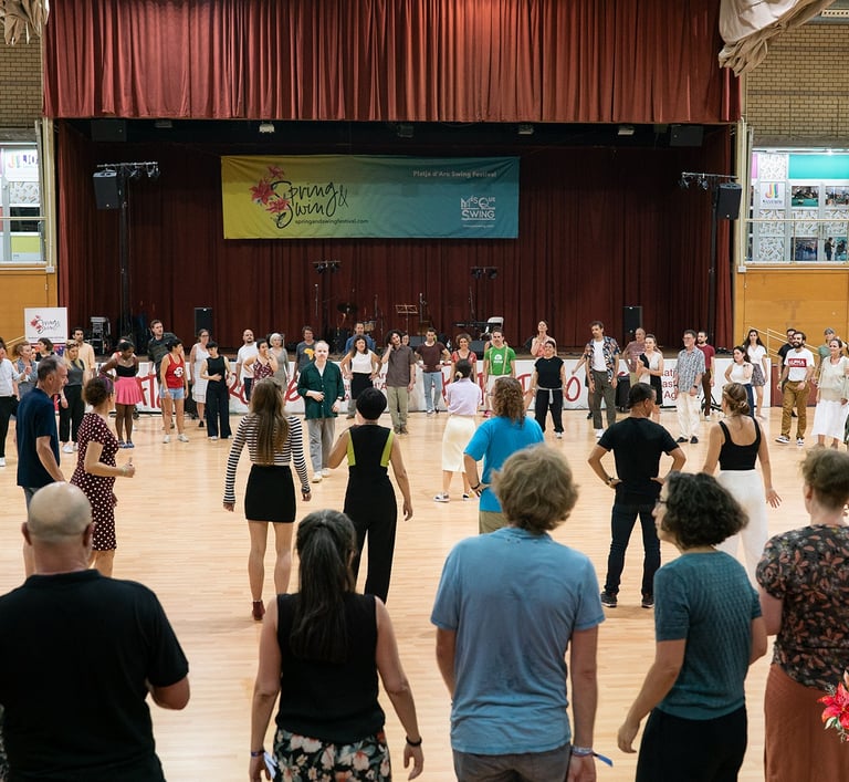 - Baile social convocado por nosotros con Banda en vivo o Música pinchada: nos encargamos de convocar baile social para bailarines de Swing de Barcelona.
